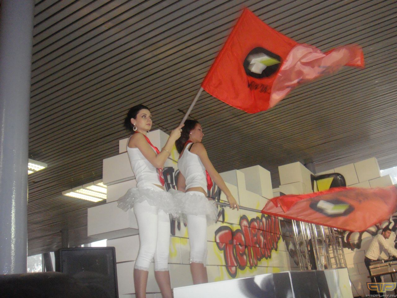 Девушки размахивают флагами